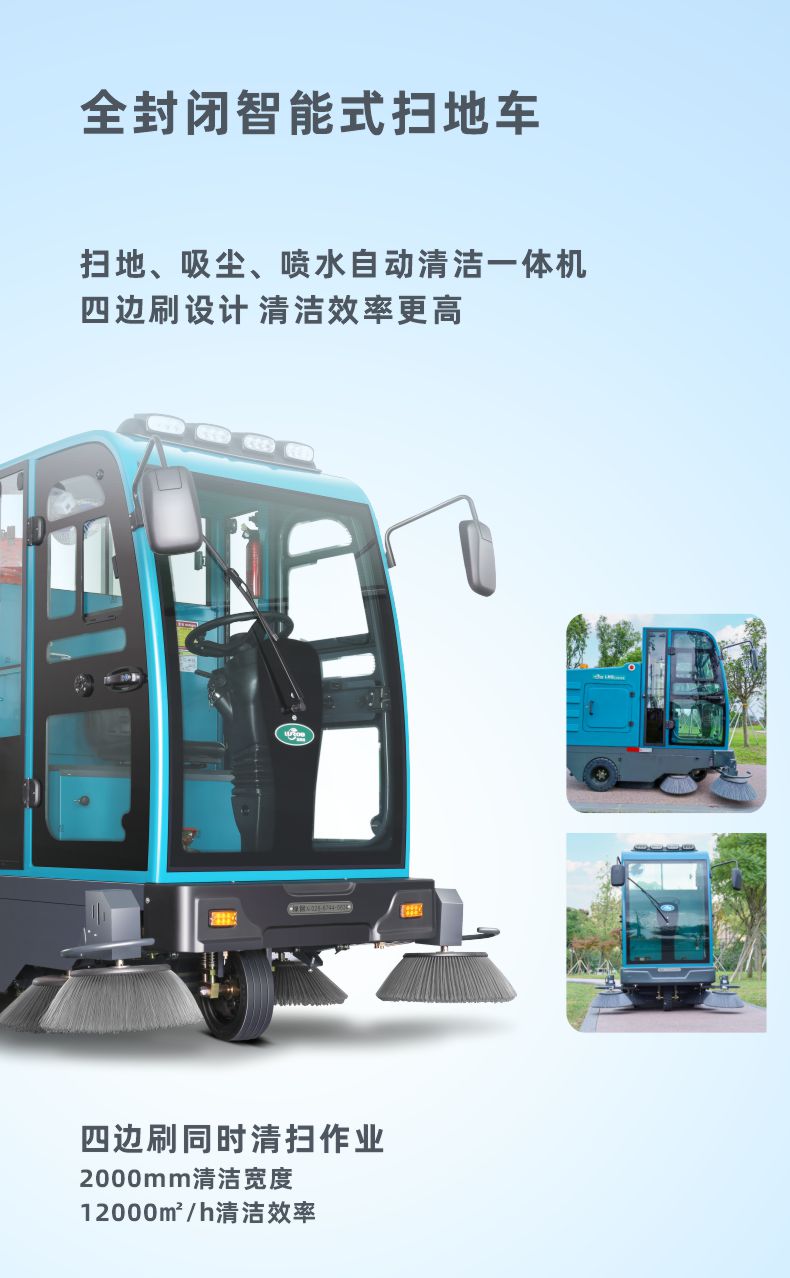 LMB2000S智能式全封閉掃地車為吸塵、掃地、噴水相結(jié)合的自動清潔一體機(jī),為戶外環(huán)境下使用,主要用于公園、環(huán)衛(wèi)、保潔公司、物業(yè)管理公司、廣場、高校的室外清掃。