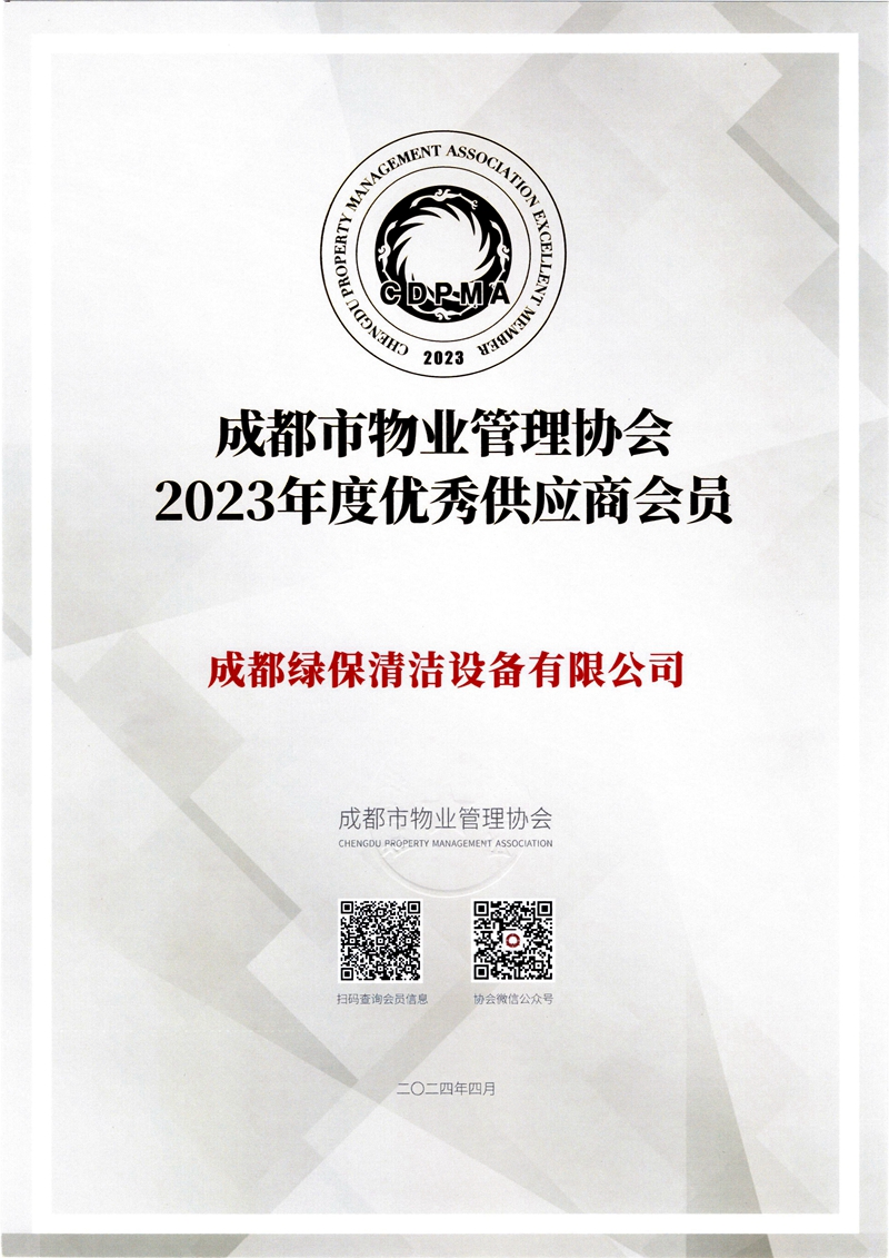 2024年4月9日,綠保榮獲成都市物業(yè)管理協(xié)會(huì)頒發(fā)的“2023年度優(yōu)秀供應(yīng)商會(huì)員”榮譽(yù)證書。這一殊榮不僅是對(duì)我們過(guò)去一年努力的肯定及行業(yè)認(rèn)可,更是激勵(lì)我們繼續(xù)前行的動(dòng)力。